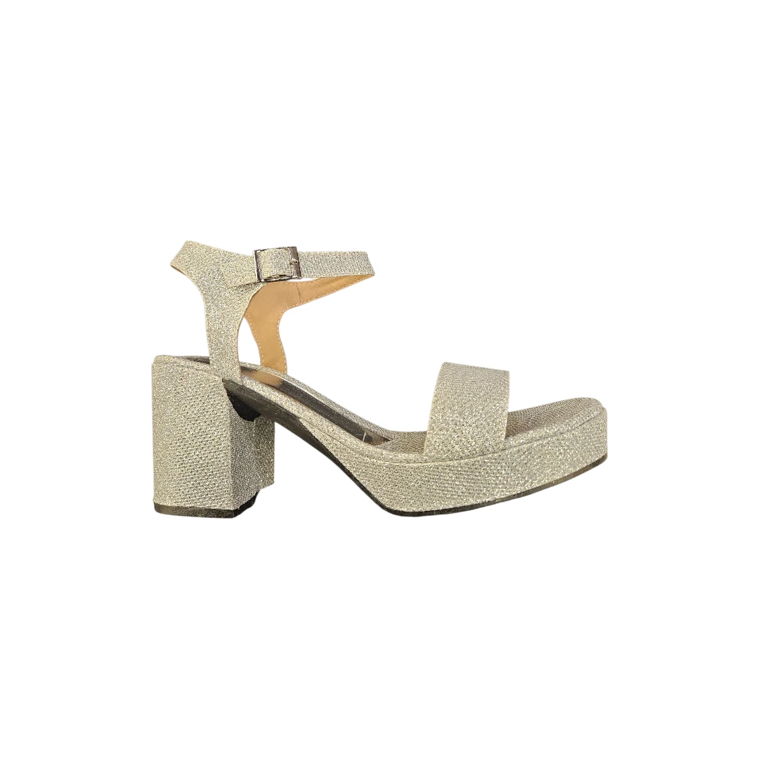 Sandalia de fiesta plata, 8 cm de taco, 2,5 cm de plataforma